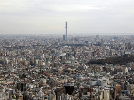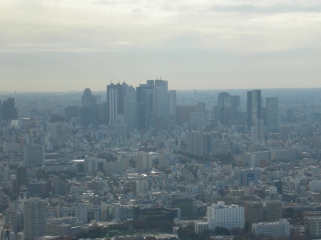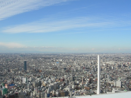 その後は池袋のサンシャイン60へ。59階のレストランで食事をした後、60階の展望台へ登りました。下の写真はサンシャイン60から見たスカイツリーです。