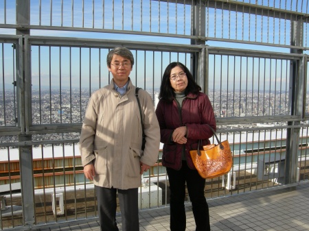 さらに上に昇って「スカイデッキ」でツーショット。今日は暖かく風が心地よかったです。
